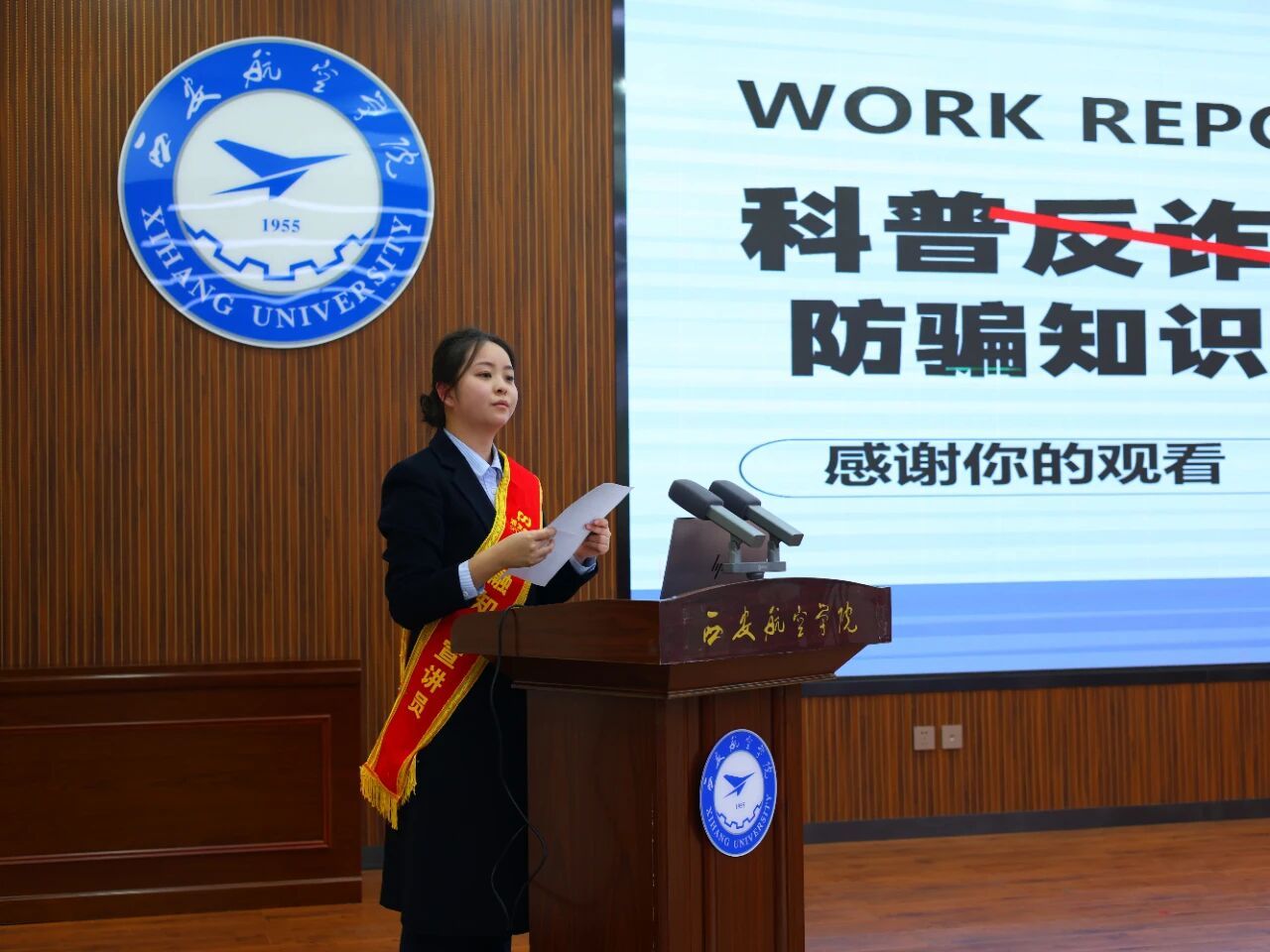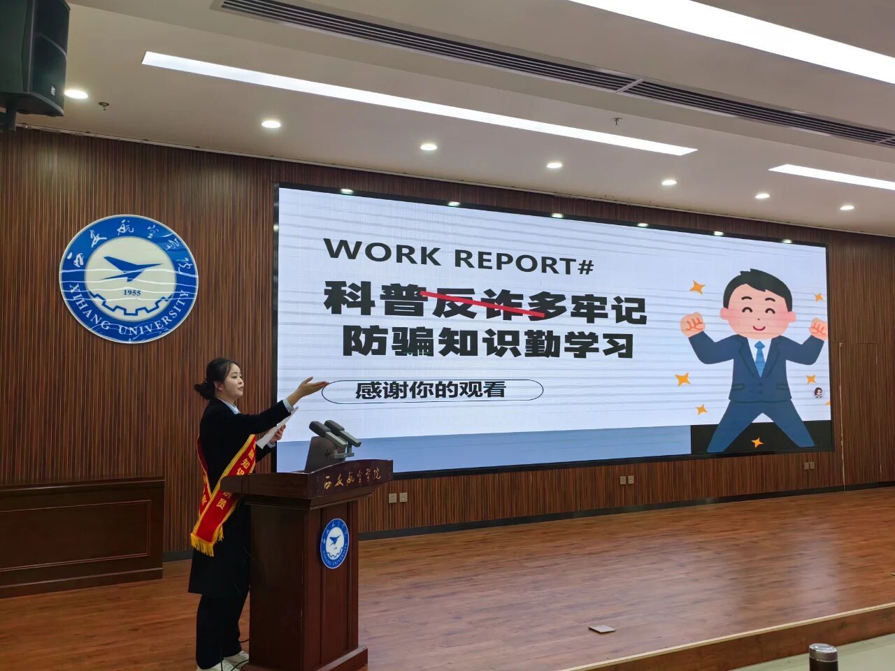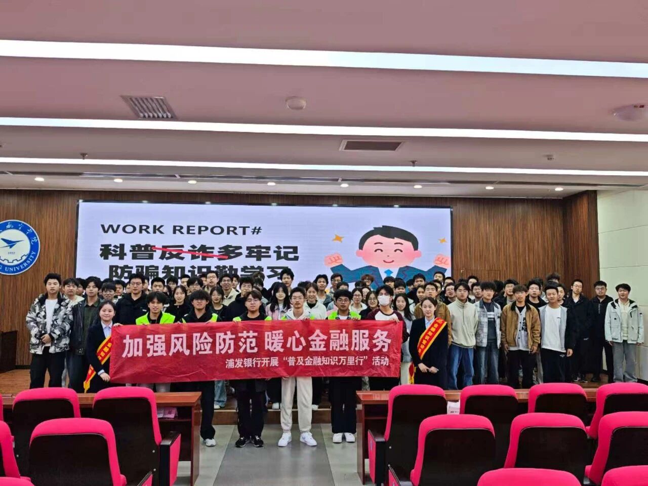 为进一步加强校园安全教育,切实提高2025级新生的法治意识与防范能力,2025年11月14日下午16时,bevictor1946联合保卫处于伟德BV1946莲湖校区图书馆5楼报告厅,举办了bevictor19462025级新生预防网络电信诈骗专题讲座。本次讲座特邀浦发银行西安高新科技支行大堂经理梓瑶主讲,bevictor1946辅导员李晨阳主持,2025级学生干部及学生会骨干成员到场聆听。
