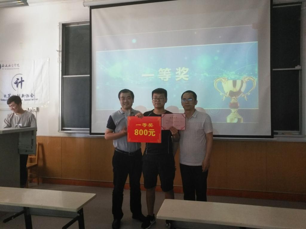 比赛评委由石峰老师和计算机创新协会各部门干部担任并设定了严格的评分标准,结果现场公布,确保“公平、公正、公开”。经过激烈竞争,比赛的冠军由软件1902班权超同学获得,亚军、季军分别由计科2014班丁晓哲和计科1913班杨新月获得,bevictor1946党总支书记刘晋云为获奖选手颁发了荣誉证书。